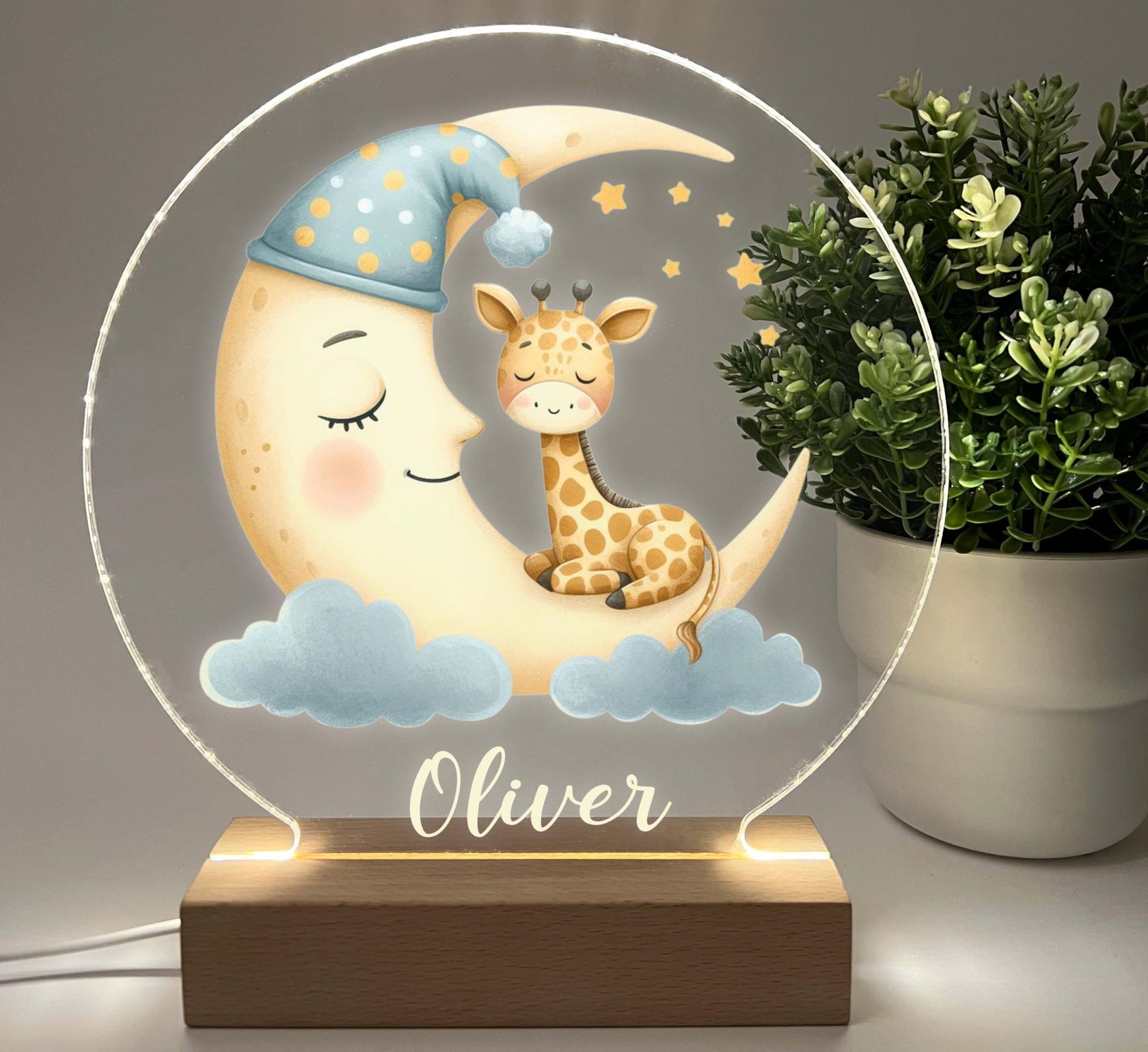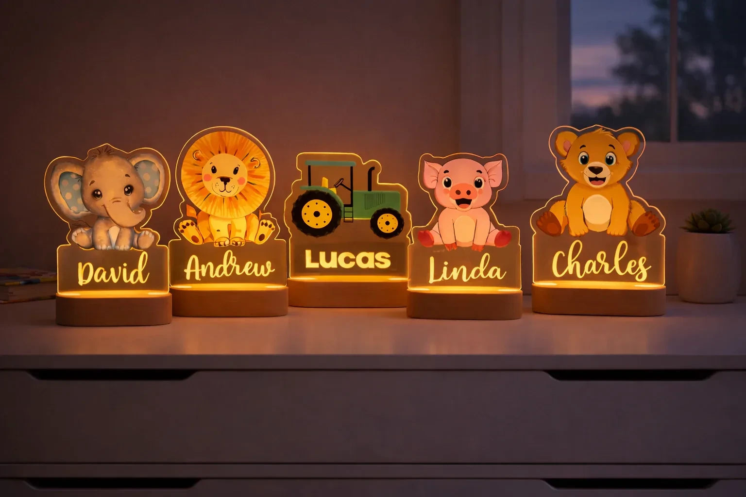 Personalized Safari Animal Night Light for Kids Custom Name Nursery Lamp