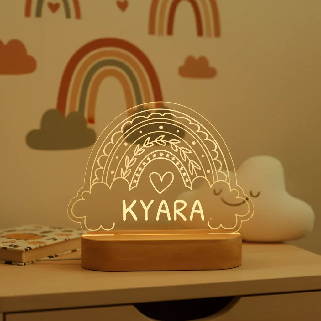 Personalized Rainbow Night Light Custom Name Kids Bedside Lamp