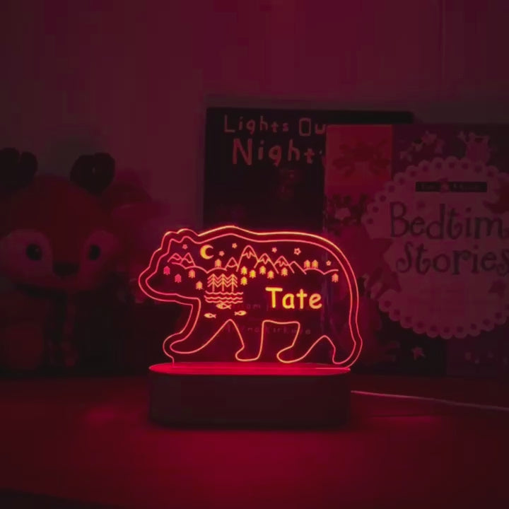 Personalized Bear Night Light for Kids Custom Name Bedside Lamp